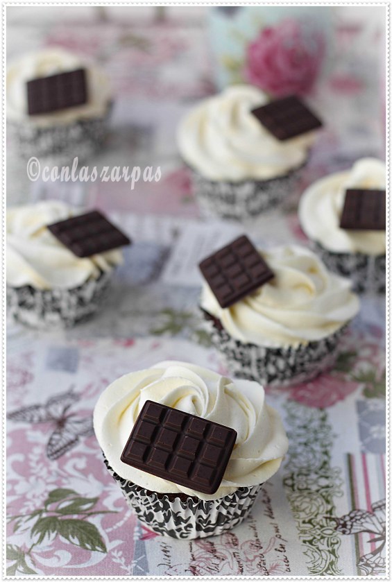 Cupcakes de chocolate negro con frosting de chocolate blanco