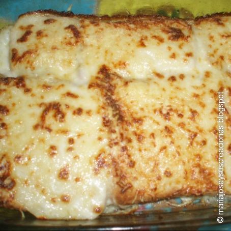 Se pone el horno a calentar. Se unta un molde con mantequilla. Se cubre con una capa de pan bimbo untado con mantequilla hacia arriba, se unta con bechamel, se pone jamón de york y encima queso en lonchas. Se tapa con otra capa de pan bimbo untado con matequilla hacia arriba, se cubre de bechamel y de queso rallado. Se mete al horno a 200º calor arriba y abajo, hasta que se dore el queso.