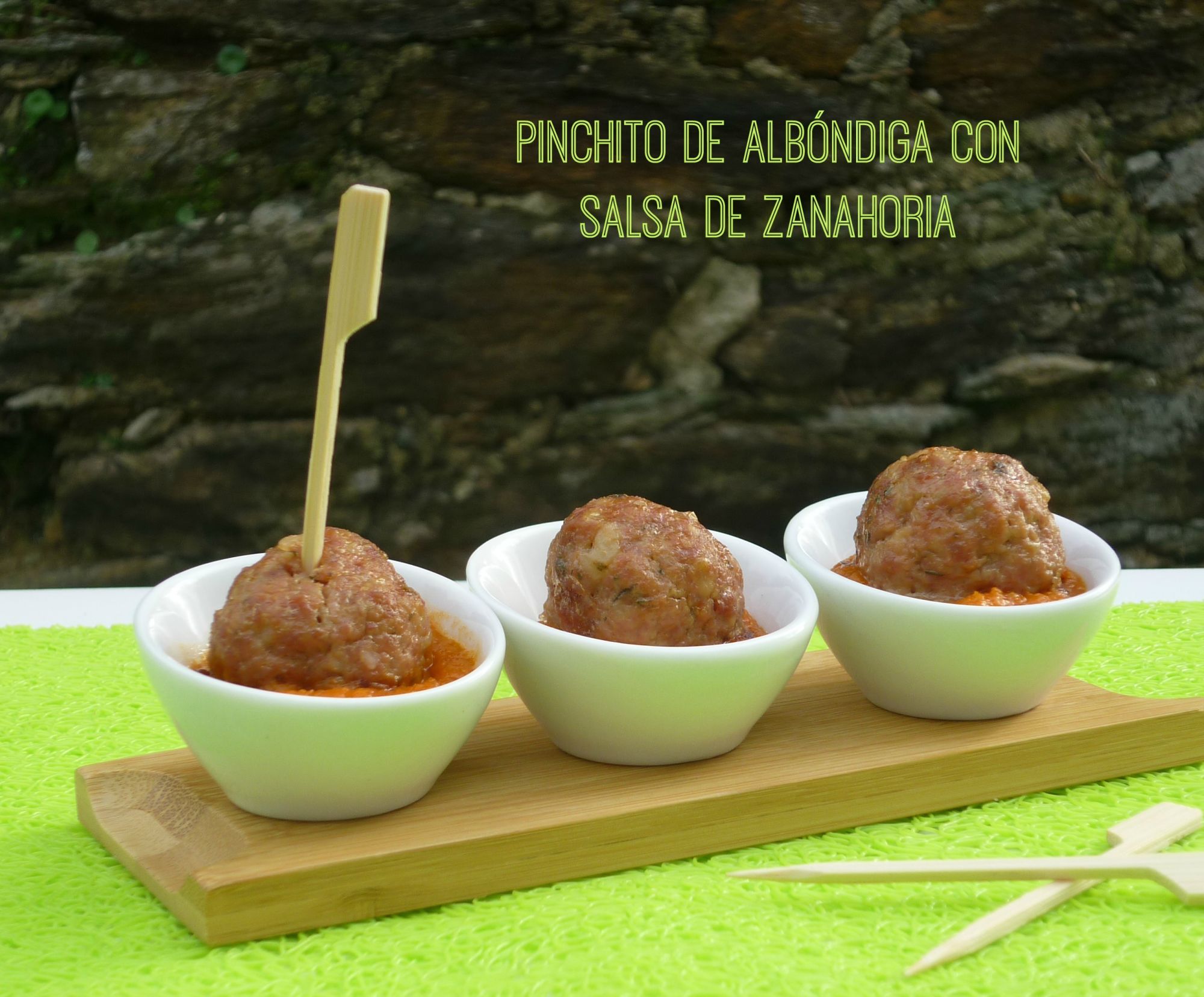 Pinchito de albóndigas al horno con salsa de zanahoria