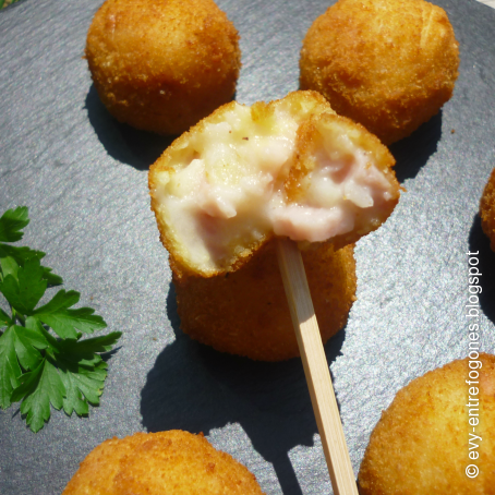 Croquetas de jamón y tres quesos Croqueta gigante sorpresa ó Huevo de Dinosaurio