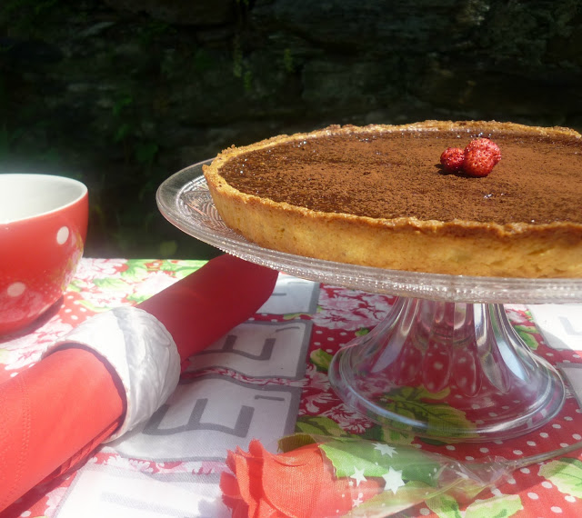Preparamos primero la masa quebrada. Ponemos la harina y la sal en un cuenco. Añadimos la mantequilla y vamos mezclando, con las yemas de los dedos, hasta que esté como pan rallado. Añadimos el azúcar y las yemas y hacemos una bola. (Si es necesario echaremos una cucharada de agua para terminar de ligar la masa) La metemos unos minutos en el frigo para que enfríe o en mi caso la hice la noche anterior. Aplanamos la masa y la volvemos a enfriar otros 15 minutos. La estiramos en el molde y de nuevo la volvemos a enfriar.