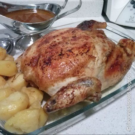 Una magnífica receta de pollo al horno con un relleno a base de foie a la pimienta y carne picada con dátiles y manzana. Todo bañado con una rica salsa de vino blanco.
