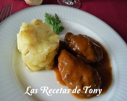 Como guarnición puedes acompañarlas con patatas fritas, cocidas o como yo en esta ocasión he puesto unas patatas encebolladas.