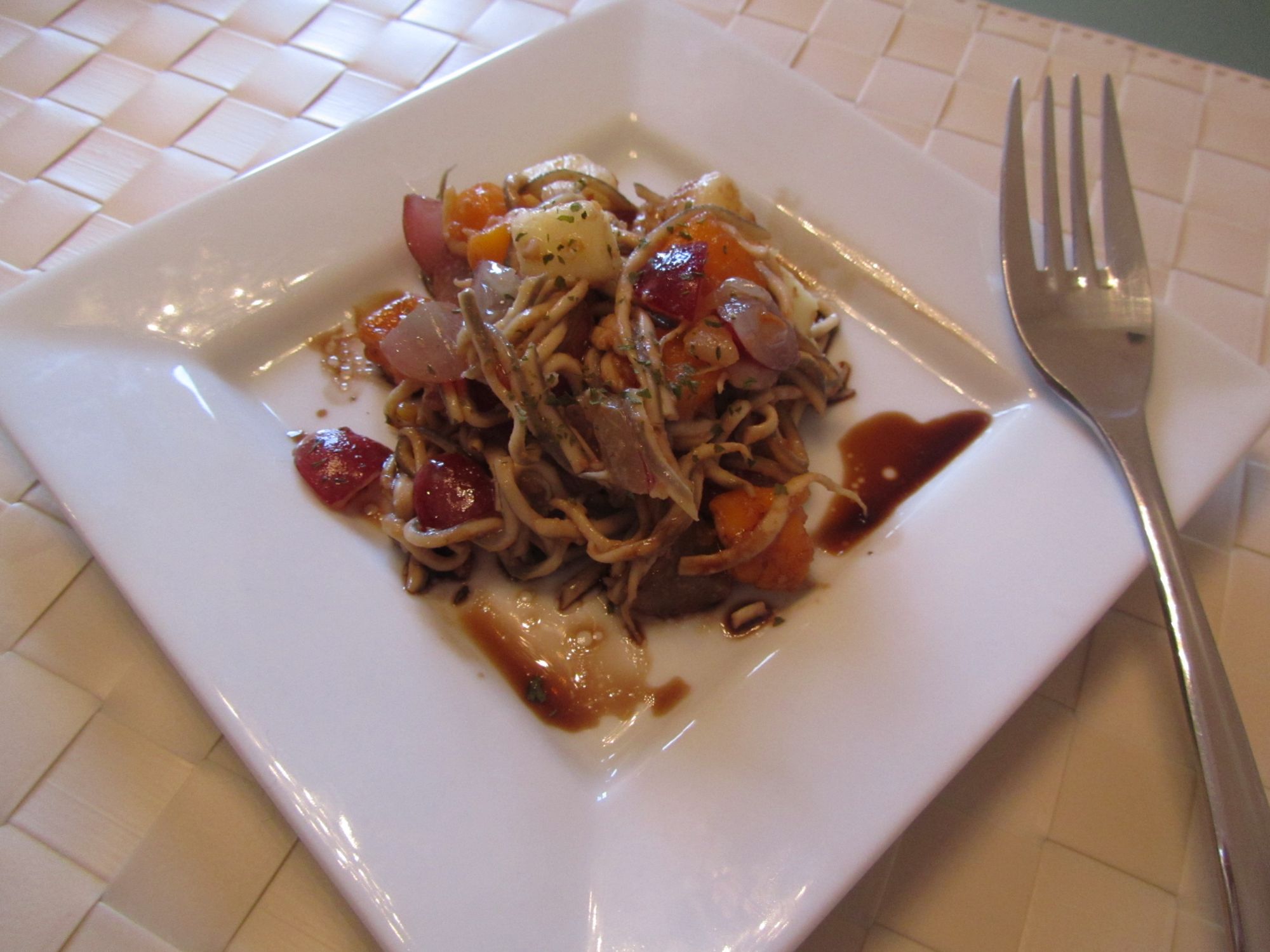 Como toda ensalada, la presentación se basa en la altura, queda muy bonito el emplatar este tipo de platos preferiblemente aumentando altura a base, ya que da una imagen más estilizada al plato. Nosotros lo hemos puesto de esta forma en un plato blanco y de dimensiones no muy grandes.