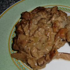 Rehogar el ajo picado en el aceite. Se echa la guindilla y la sal junto con los champiñones. Se echa agua, un poco de vino blanco y una pastilla de avecrem. Se dejan cocer hasta que se ven listos