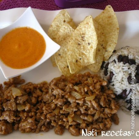 Con esta combinación del arroz y la carne se pueden rellenar la masa y preparar unos burritos o fajitas y quedan buenísimas ....