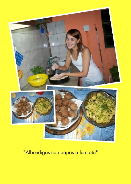 Se cortan las papas en rodajas finas y se colocan en una sartén con MUY poco aceite, dejar que se cocinen sin remover para que no se rompan y a medida que se cocinan agregar los demás ingredientes. Una vez listas servir con las albóndigas.