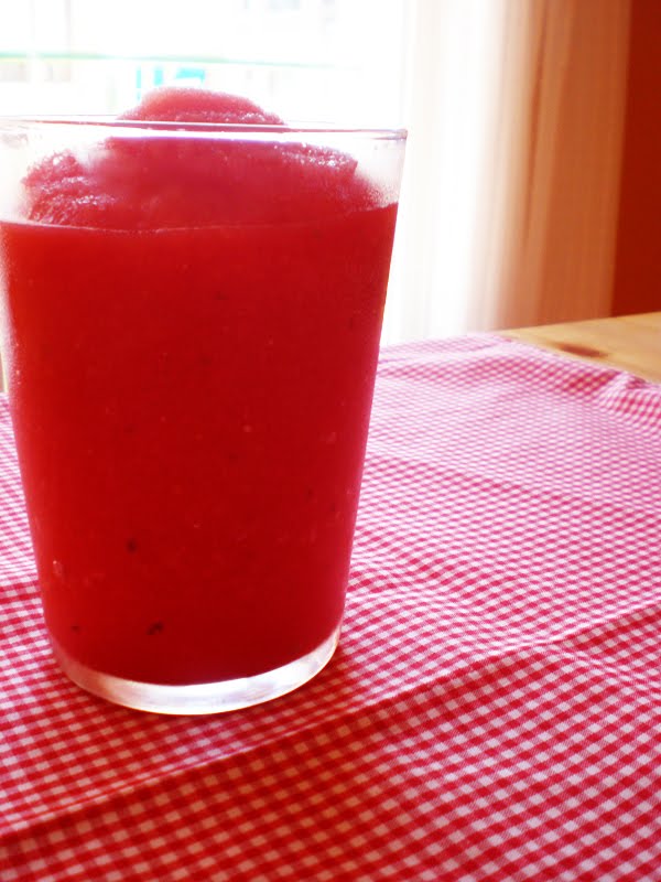 Entonces incorpora el hielo picado y tritura a máxima potencia hasta que tenga la textura del granizado, habiéndose integrado con el jugo de la sandía. No necesita nada más.