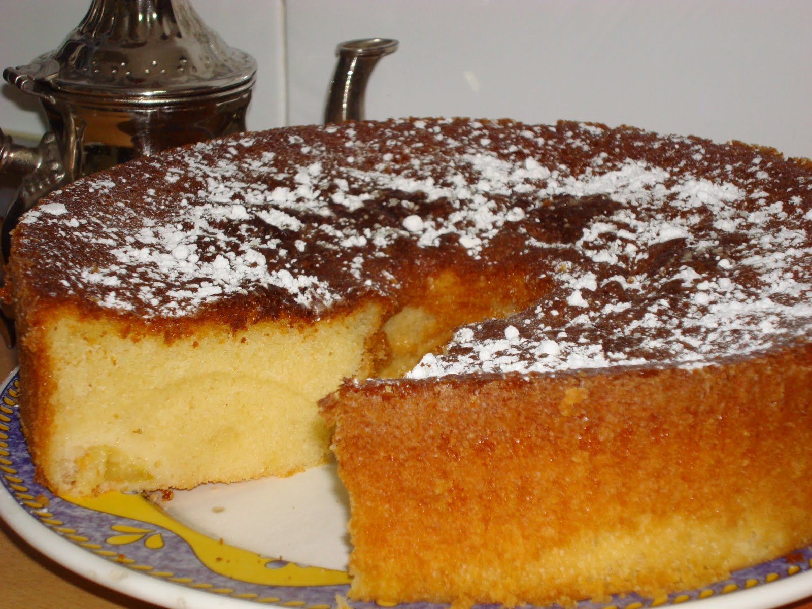 Una vez que el bizcocho está frío desmoldamos y podemos espolvorear azúcar glass por encima