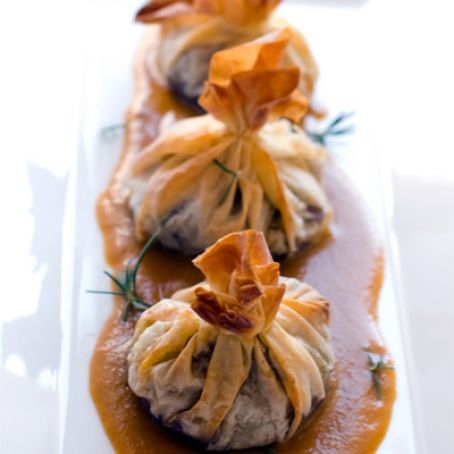 SAQUITOS DE PASTA FILO RELLENOS DE RABO DE TORO