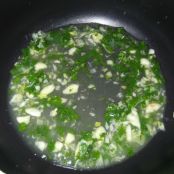 Cuando haya pasado 1 hora y media, pelamos los ajos y el perejil, lo echamos en un mortero y lo machacamos. Esto lo ponemos en un cazo con un chorro de vinagre y otro medio vaso de vino y lo calentamos. Abrimos el horno sacamos la carne, le damos la vuelta y le echamos la mezcla anterior. Lo volvemos a meter al horno.