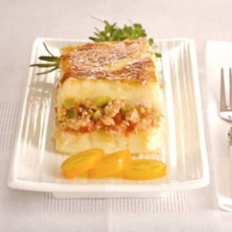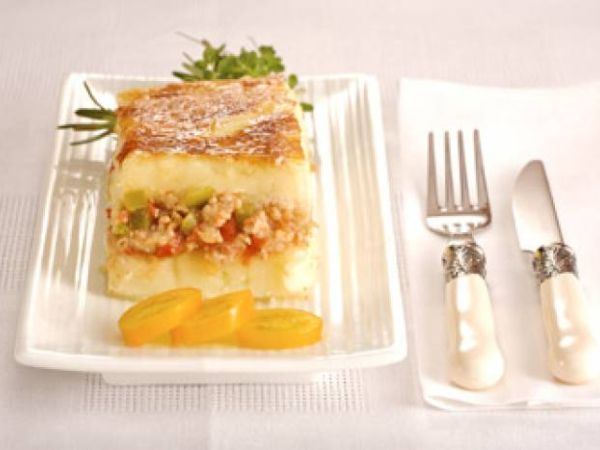 Etapa 4: estendemos el pure en un trapo,sobre este colocamos la carne y lo enrollamos