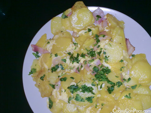 retiramos el aceite sobrante y asamos el bacon, chorizo o lo que vayamos a usar, una vez hecho lo apartamos junto con las patatas.