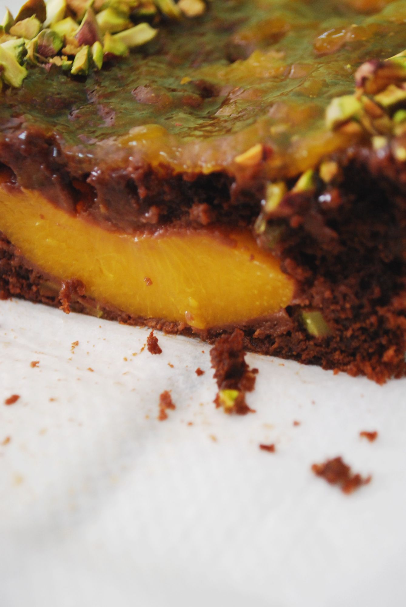 Por último y una vez frío pincelamos con mermelada toda la superficie incluida la fruta y espolvoreamos con los pistachos.