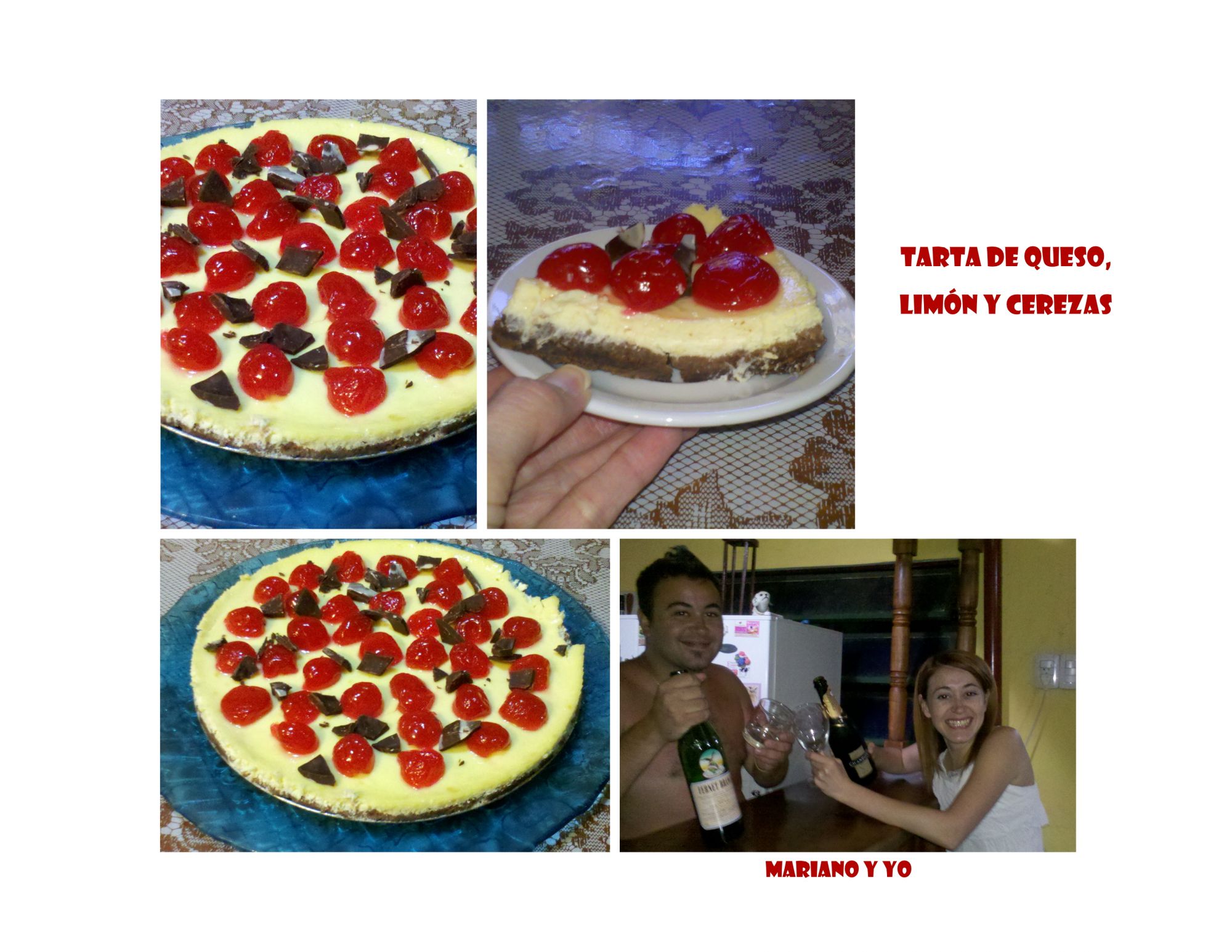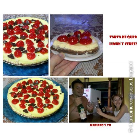 Tarta casera de queso, limón y cerezas