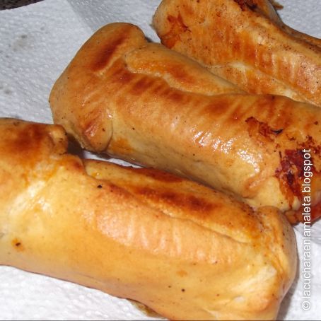 Coges un trozo de masa le das con el rodillo para estirarla y poder formar el pan. Cuando ya lo tienes partes los chorizos por medio, lo colocas en medio de la masa y lo cierras, como si estuvieras arropando al chorizo, lo pones encima de un plato y se tapa con un paño.