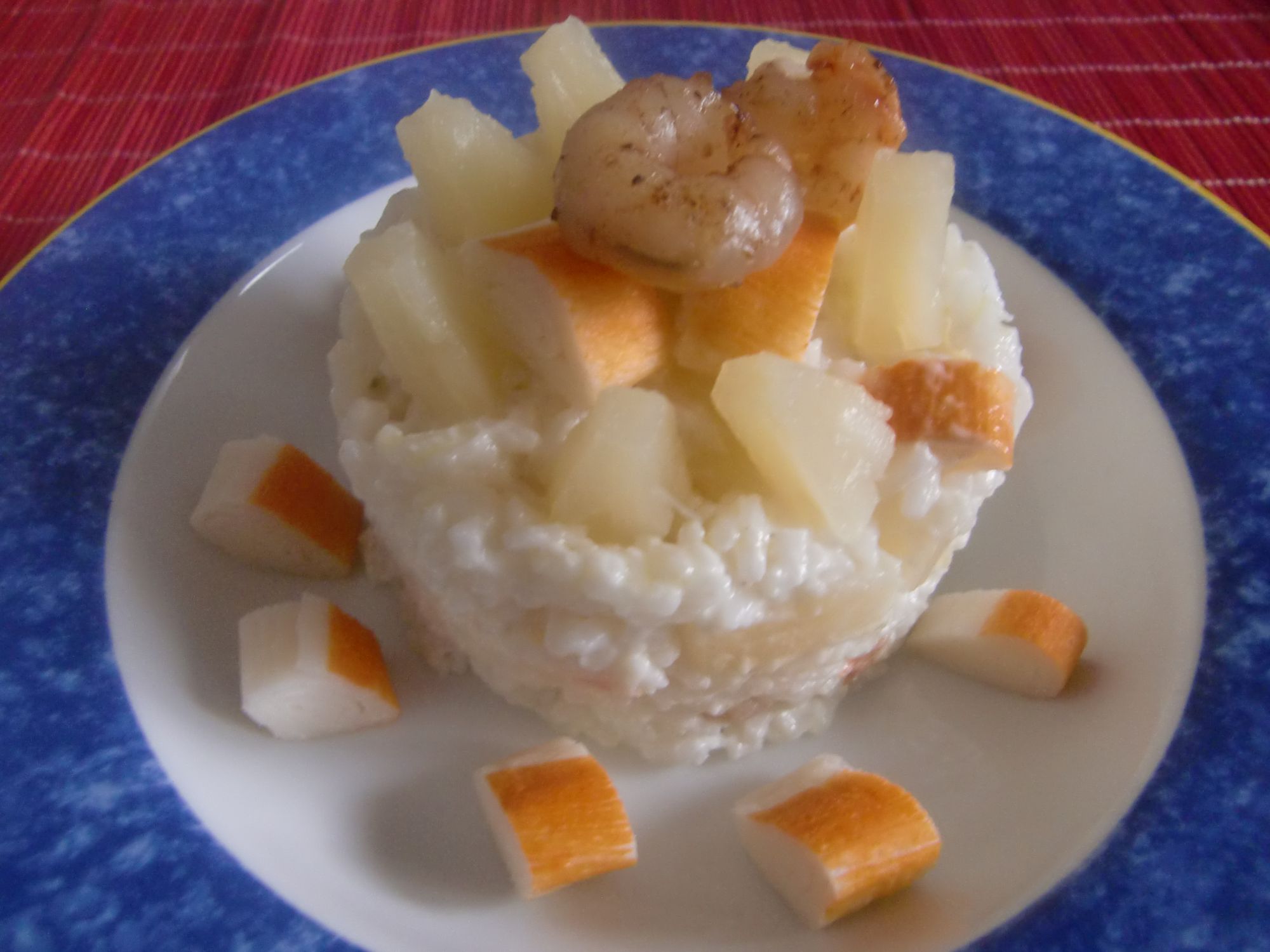 Podéis dejar algunos trozos de piña, surimi y alguna gamba para decorar.