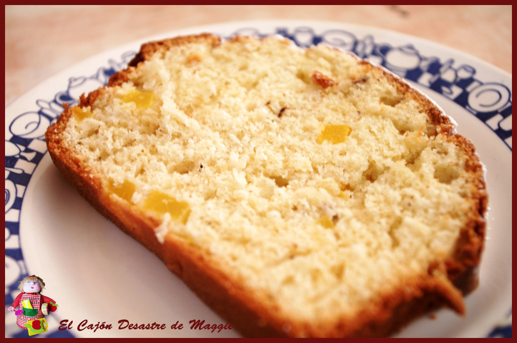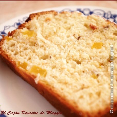 Engrasar un molde rectangular con un poco de mantequilla y verter la mezcla. Cocer en el horno a 180 ºC durante 40 minutos y a 160 ºC durante 10 minutos más (comprobar que al pincharlo el cuchillo sale limpio).