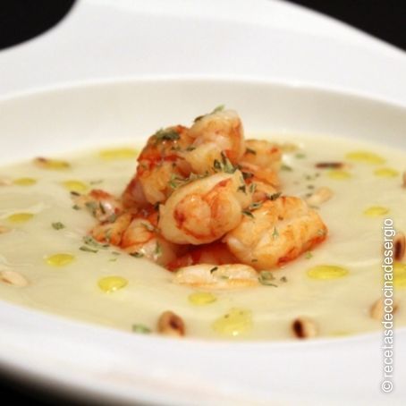 Crema de coliflor con gambones y piñones al aroma de trufa Aprobadapor el chef 1 foto