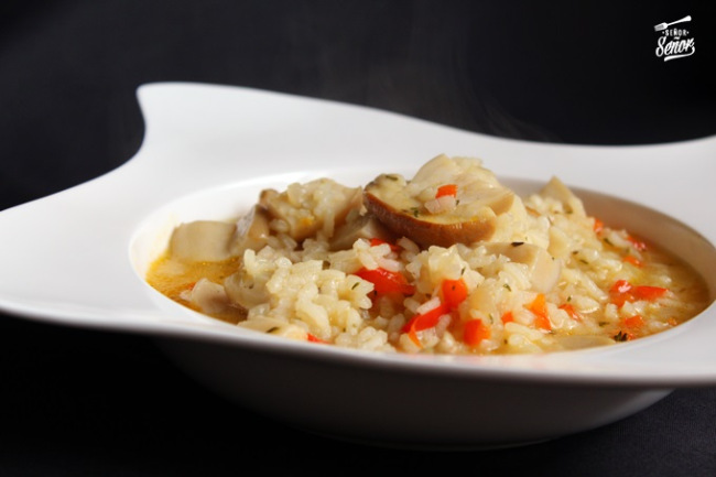 Comentaros que este es un arroz meloso, es decir, esta entre seco y caldoso. Por ejemplo si para hacer un arroz seco usamos el doble de agua que de arroz y para uno caldoso 4 veces más, en el caso del arroz meloso usaremos 3 medidas de caldo por medida de arroz. Quedará un arroz muy meloso sin llegar a ser caldoso, simplemente espectacular.