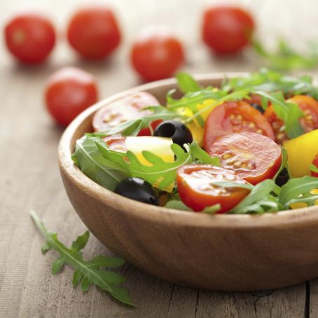 Cortamos los tomates y el pepino en dados, limpiamos los pimientos y los cortamos en tiras.