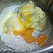 - Preparar la masa poniendo en el vaso la margarina, la harina, la sal y la yema de huevo y mezclar durante 5 segundos en vel. 5 y luego programar 5 minutos vel. espiga.