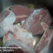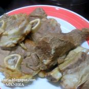 Este es un plato de los de siempre, de olla expres, que hacía tiempo no comía, pues desde que me fuí de casa de mi madre que solía prepararlo y de eso hace ya quince años, a mí no se me había ocurrido hacerlo, hasta hoy....que le he quitado el polvo a la libreta de apuntes que tenía cuando estaba en casa. He variado un poco en cuanto mi madre en lugar de osobuco lo hacía con huesos de espinazo, y no le echaba las hebras de azafrán.......por lo menos...yo no lo tenía anotado, y también ella le echaba patatas, pero yo, como la hago de un día para otro y para congelar, pues como que no me gusta el sabor que tiene la patata al descongelar.