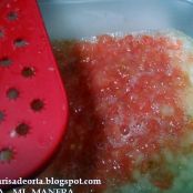 - Se ralla el tomate y la cebolla. Se majan los ajos con las hebras de azafrán y se incorporan a la olla.