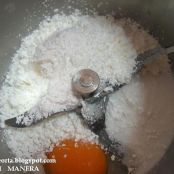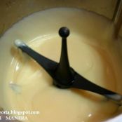 - Preparar una crema pastelera poniendo en el vaso del thermomix las tres yemas de huevo, el azúcar y la maizena, y mezclar durante 10 segundos en velocidad 2.