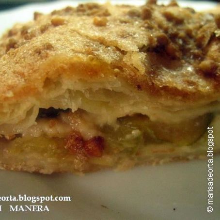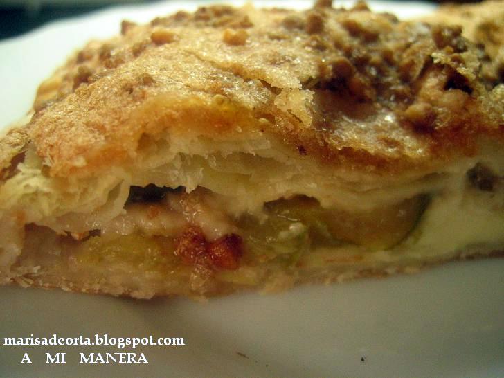 - Lavar los higos y secar bien, cortarlos en rodajas gorditas y colocarlos sobre la crema y cubrir con la otra lámina de hojaldre. Sellar bien los bordes (yo he utilizado un tenedor)