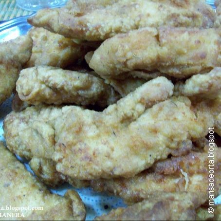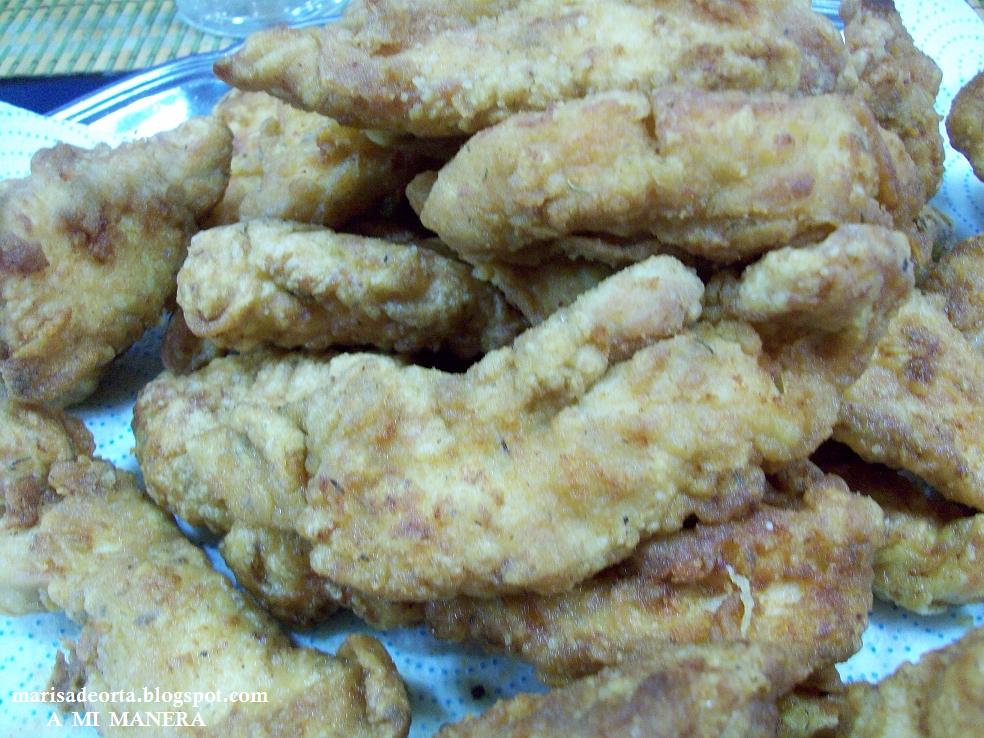 - Una vez que haya terminado de marinarse sacar los trozos de pollo, rebozarlos y seguidamente freirlos en aceite bien caliente.