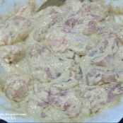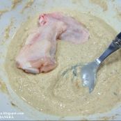 - Preparar el marinado que es donde se va a tener que meter el pollo durante el tiempo que podamos (mínimo una hora, cuanto más mejor): en un bol mezclar los ingredientes del marinado y por último añadir agua hasta formar una crema bastante pastosita.