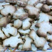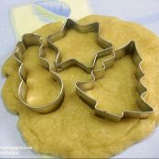 - Mantener la masa caliente en el vaso para ir sacando bolas pequeñas de masa y formar tortas finas haciéndoles el borde puntilleado (yo las he cortado con cortapastas de motivos navideños)