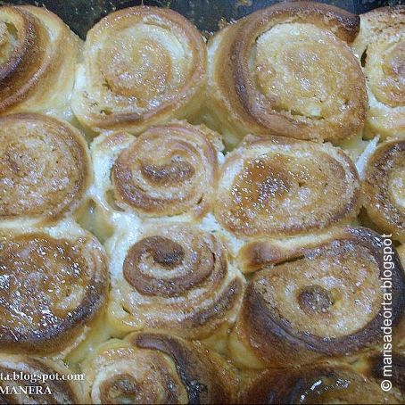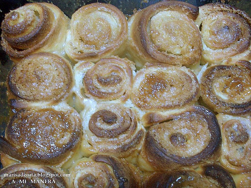 - Precalentar el horno a 200º. (Yo espolvoreé los rollos con azúcar moreno)