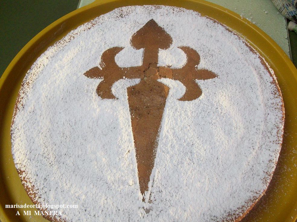 - Una vez fría, desmoldarla, colocar una plantilla con la cruz de Santiago y espolvorear azúcar glass por encima con un colador.