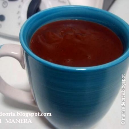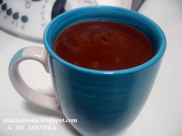 - Cuando falten unos cuatro minutos para terminar, incorporar el nescafé y la pimienta. (Esta mezcla de sabores me la dijeron en la delegación de Thermomix y la verdad es que queda un chocolate muy especial.)