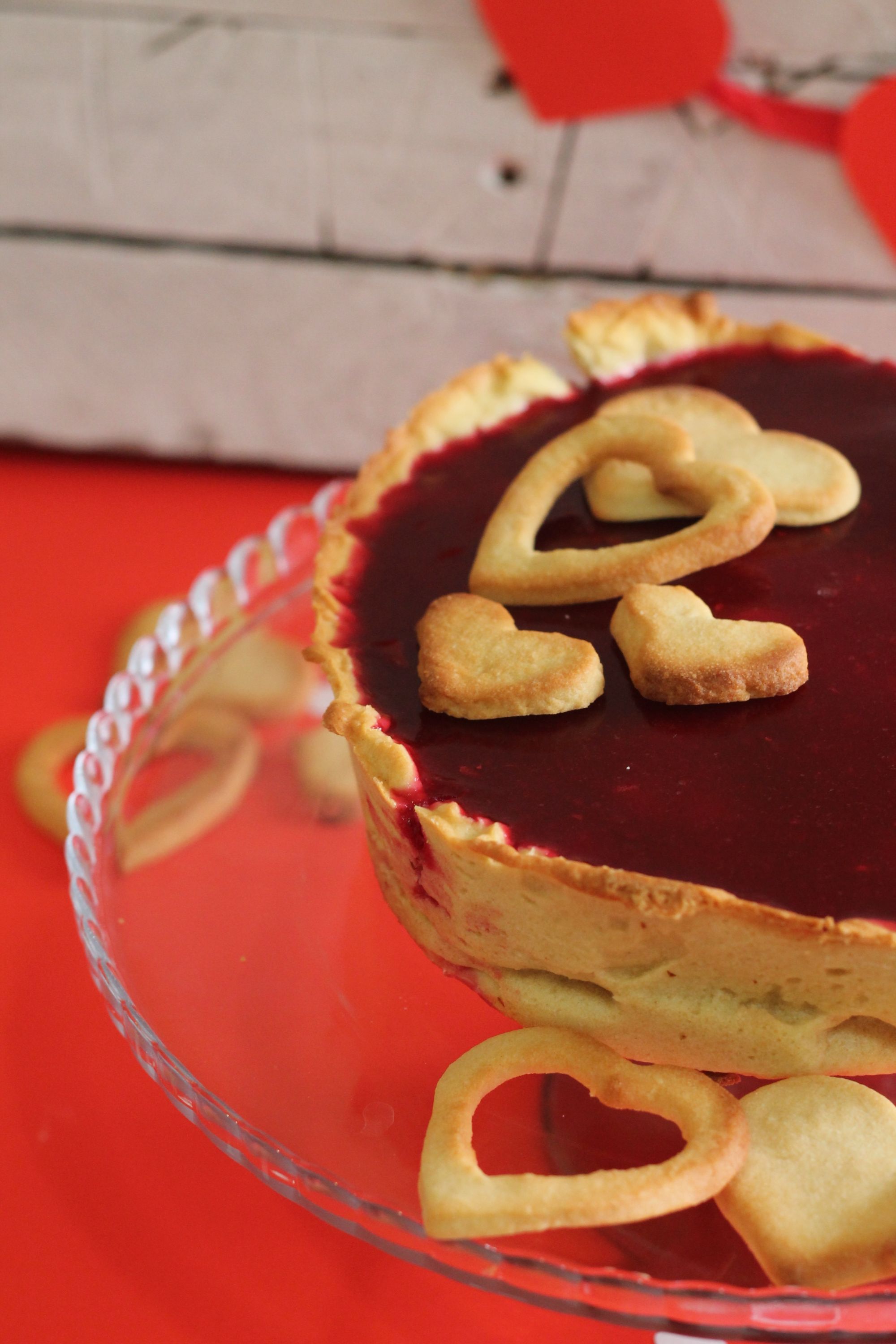 10. Cubrir con la gelatina de frambuesa. Dejar en la nevera hasta que se solidifique. Justo antes de servir, decorar con las galletas en forma de corazón.