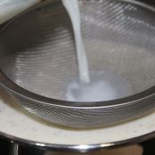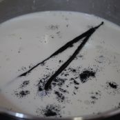 Colar la leche encima de la nata ya fuera del fuego. Remover y retirar la vaina de vainilla. Dejar enfriar