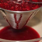 4. Tamizar las frambuesas cocidas, recogiendo el líquido obtenido en un bol.