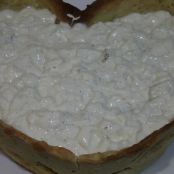 9. Cuando la crema de nata empiece a cuajar, verter en el molde de masa quebrada.