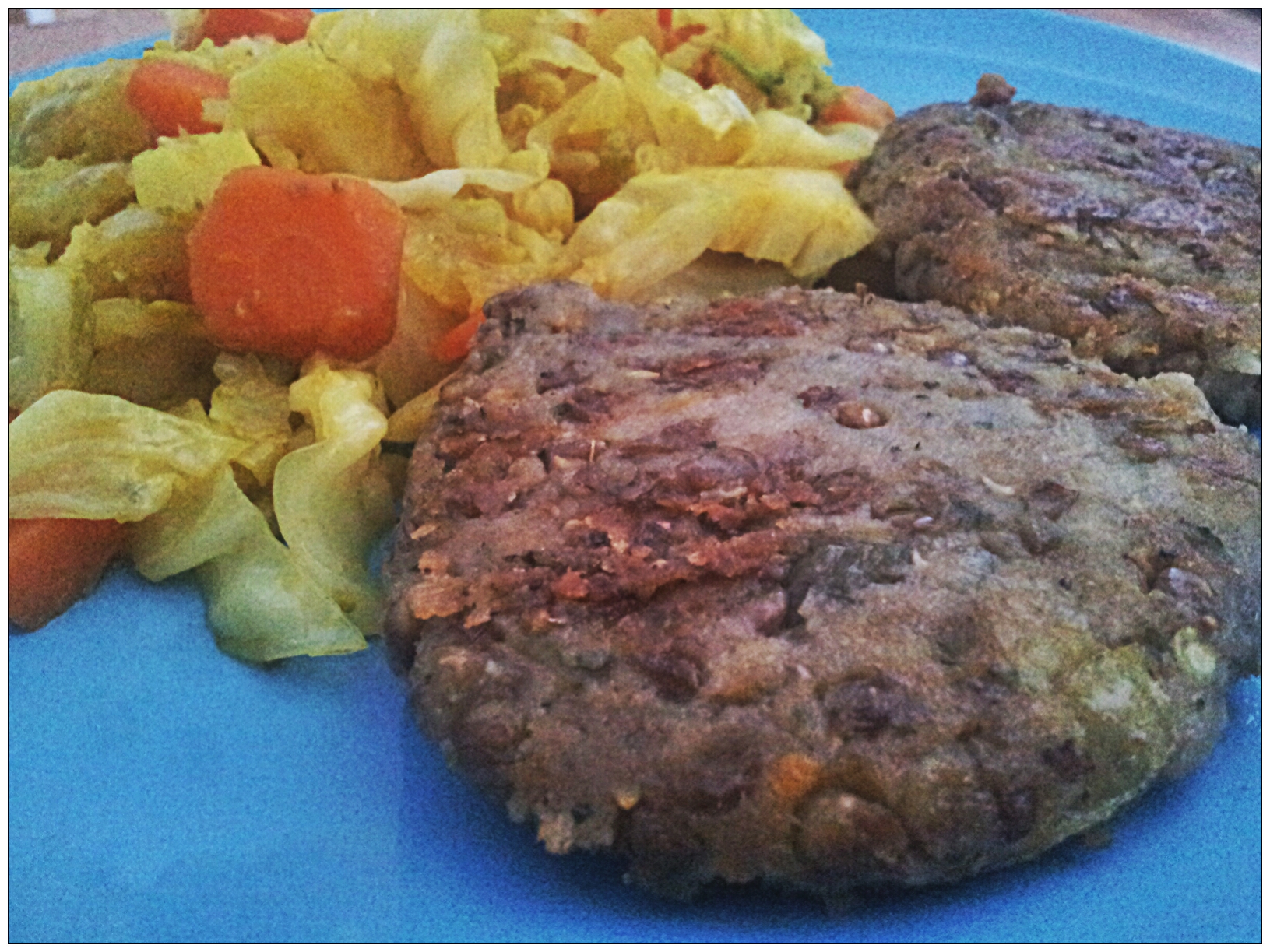 Primeramente vamos a escurrir bien las lentejas, que no quede apenas caldito... las machacamos con un tenedor (en mi caso tenian zanahoria y pimiento verde), añadimos el humo líquido, las especias y el pan rallado... mezclamos hasta obtener una masa bien contundente.