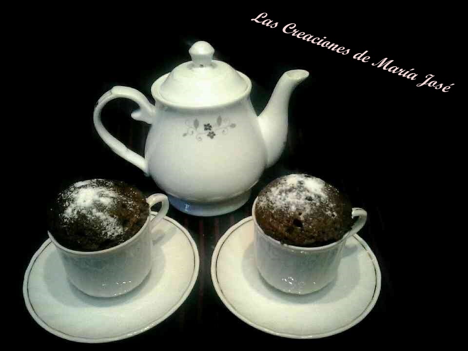 Mezclar los ingredientes y batir muy bien, cuando este toda la masa bien mezclada echarla en 4 tacitas o en un bol. Meter en el microondas 2 minutos si no estuviera listo ponerlos por intervalos de 15 segundos hasta que esten hechos. Yo los decore con un poco de azúcar glas.