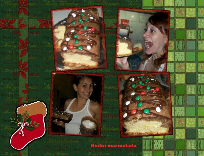 Volcamos en los moldes y con la ayuda de un tenedor revolvemos para que se mezclen un poco las preparaciones, pero no demasiado.