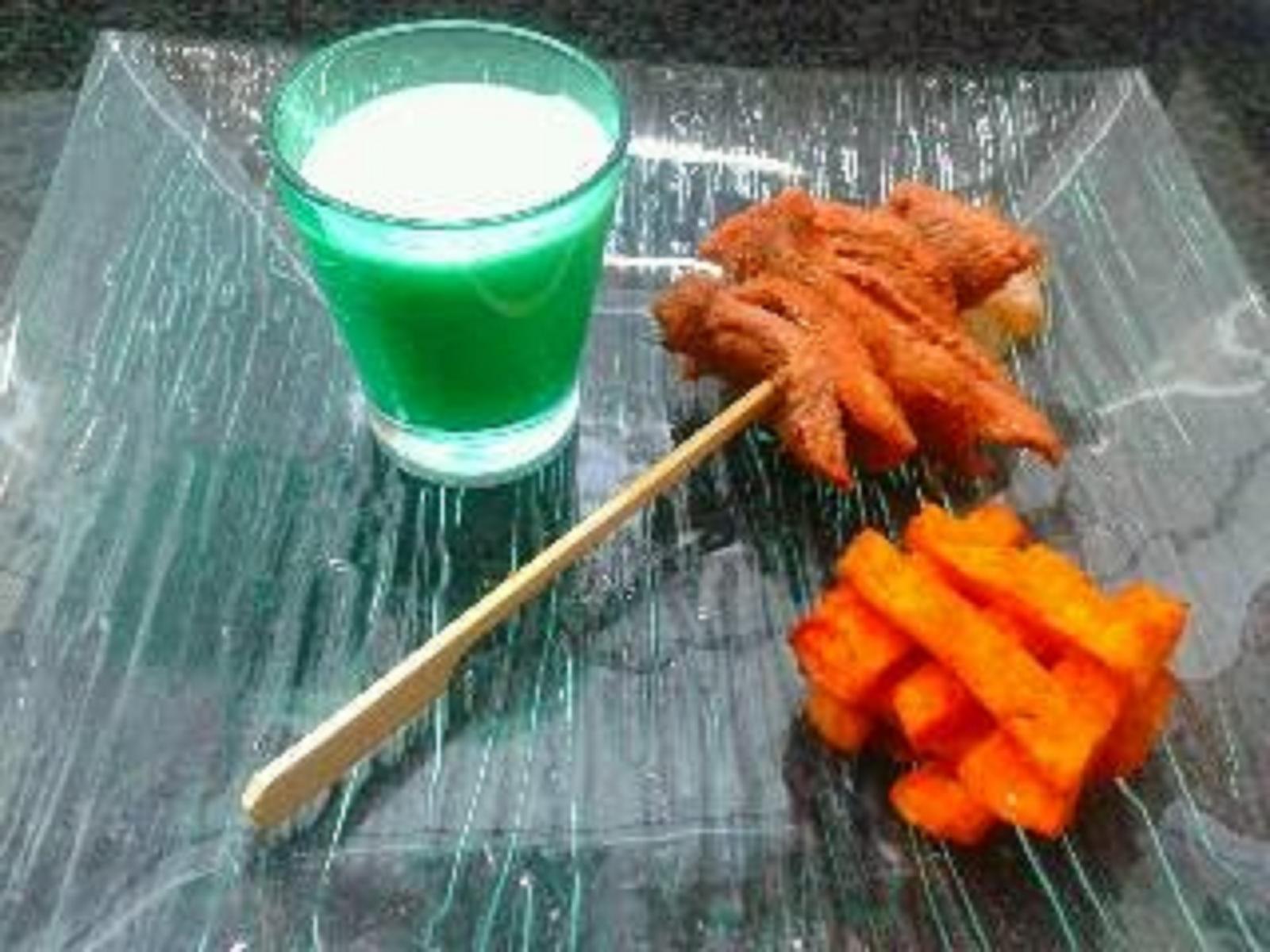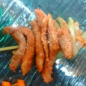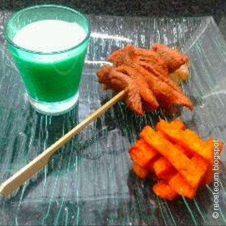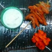 Pincho Tandoori con salsa de yogurt y boniato frito