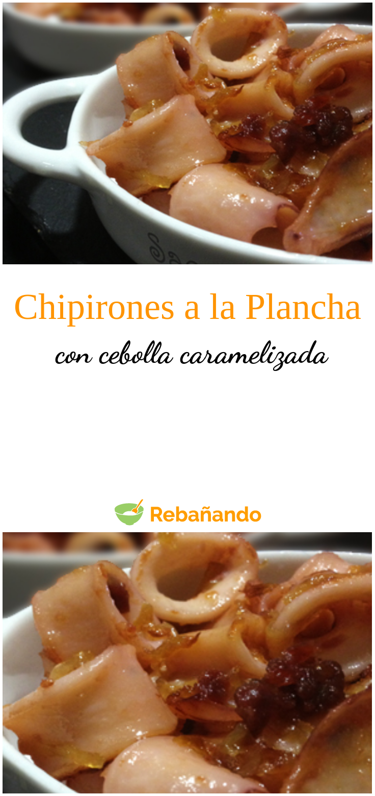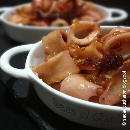 Unos ricos chipirones con el sabor dulce que le aporta la cebolla caramelizada.
