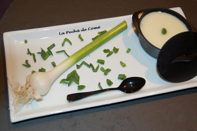 - Lavamos los puerros para quitarles la tierra, los secamos y cortamos a trozos (solo la parte blanca). Troceamos durante 10 segundos a velocidad 4.