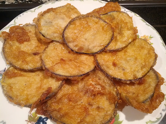 Es tallen les alberginies en rodanxes, es salen i es reserven.