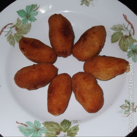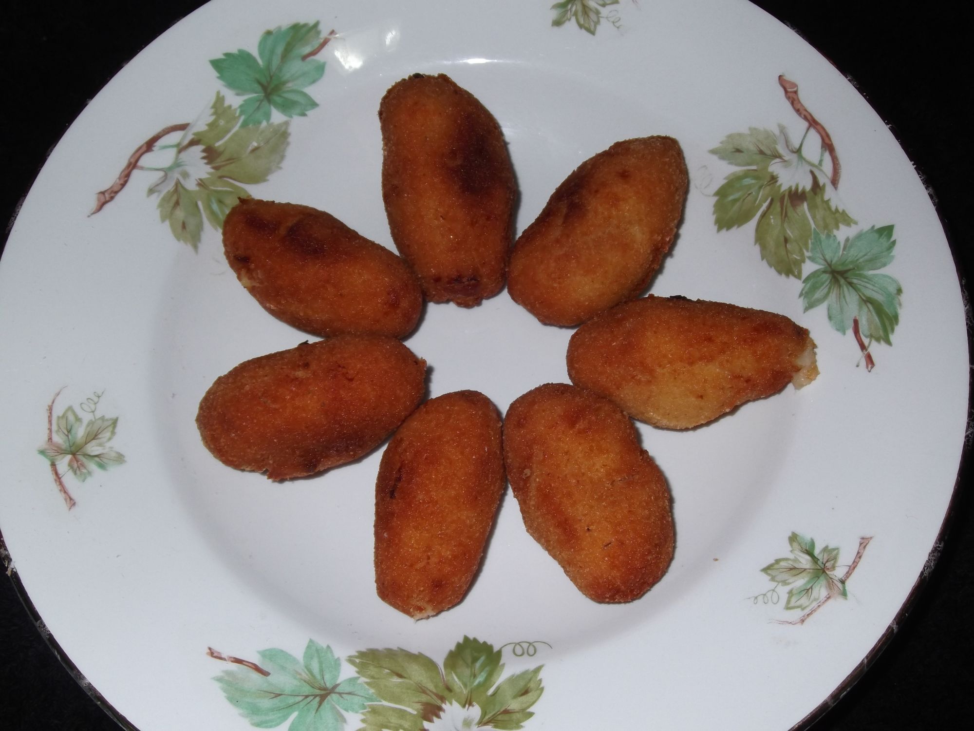 Pasada una hora comenzamos a realizar nuestras croquetas con la forma que más os guste, en este caso mi madre las hace ovaladas. Se pasan por pan rallado, huevo y otra vez por pan rallado y se ponen a freír en abundante aceite caliente, puede ser en una sartén o en una freidora y ya están listas para comer. Es un bocado exquisito y muy barato que podéis utilizar en vuestras cenas con amigos.