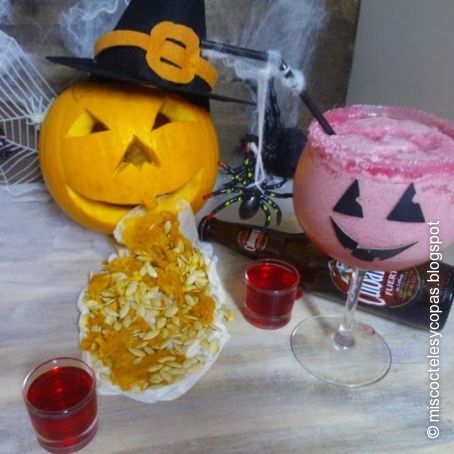 Para los amantes del terror os traigo un coctel para estas fiestas de hallowen... sabroso terrorifico de rico.de murte de frio que queda pero eso si sin pasarse que podemos terminar como la calabaza ajajj este coctel lleva tequila y ginebra pero con ron tambien quedaria muy bueno...