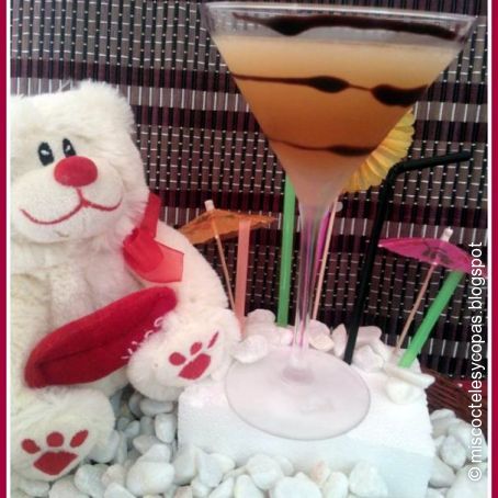 Prepararemos la copa rodeándola con sirope de chocolate y la pondremos a enfriar en el congelador seguidamente pondremos en la coctelera todos los ingredientes y agitaremos hasta enfriar y volcamos en la copa y listo ..